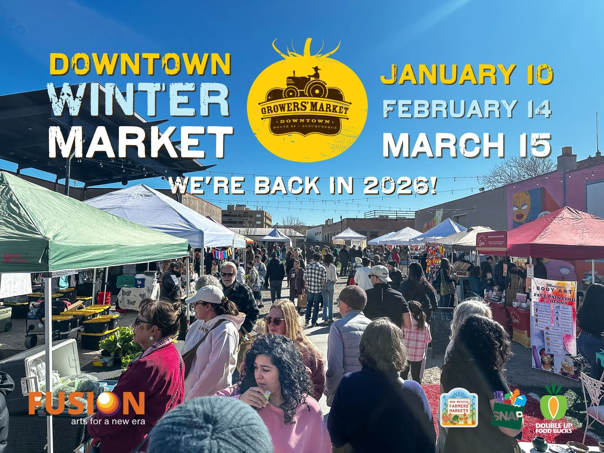 Save the dates!! The Downtown Growers’ Market Winter Market returns in 2026 on 2nd Saturdays at FUSION. If you want to be the first to know when the vendor application opens email kat@abqmainstreet.org.